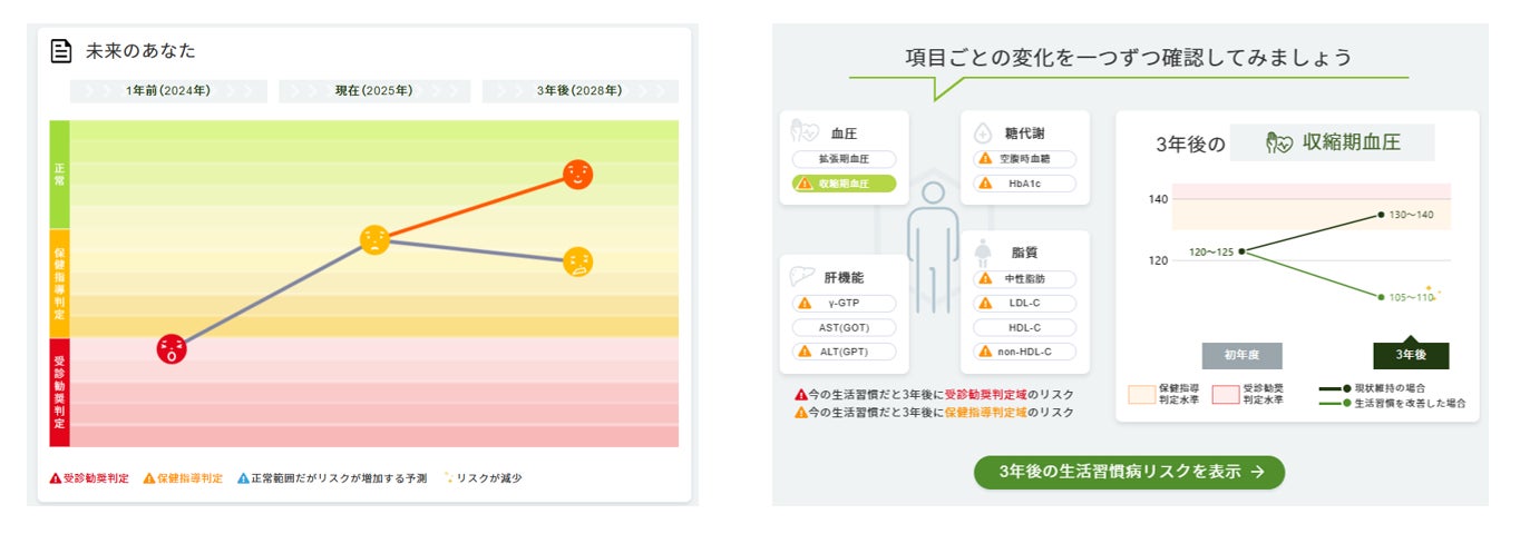 株式会社バリューHRは、健診結果管理システムにAIで3年後の健康状態を予測する新機能「健康予測」を2025年10月から提供します。弘前大学・玉田嘉紀教授の監修のもと、12項目の検査値を予測し、糖尿病・高血圧症・脂質異常症・肝機能障害のリスクを表示します。利用者は生活習慣の改善を選ぶだけで3年後の予測値の変化をシミュレーションでき、企業や健康保険組合の健康啓発や医療費適正化に資することが期待されます。診断や治療の目的ではない点に留意されています。