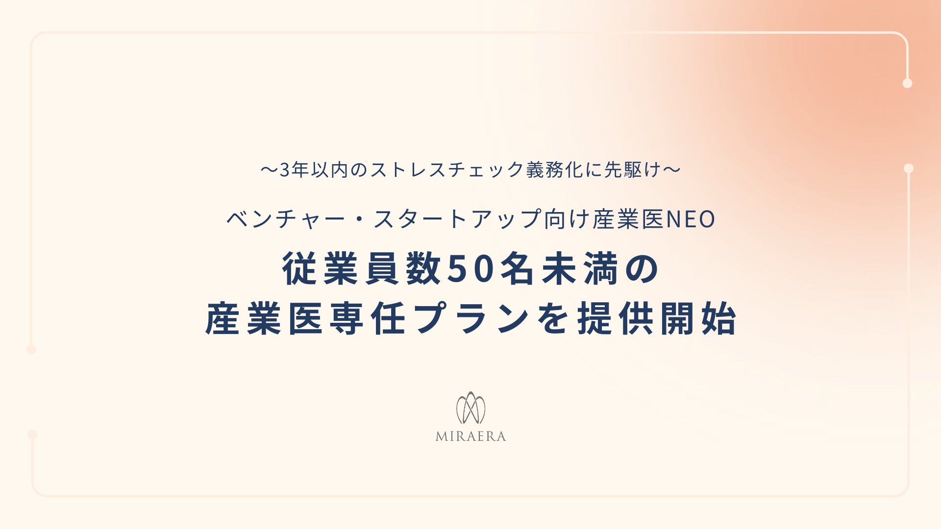 MIRAERA株式会社のプレスリリース(2025年9月30日 11時50分)【ストレスチェック義務化に先駆け】50名未満…