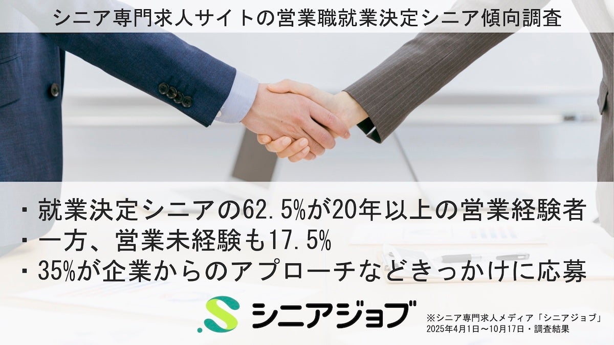 株式会社シニアジョブのプレスリリース(2025年10月23日 15時00分)営業職へのシニア就職、62.5%が経験20年…