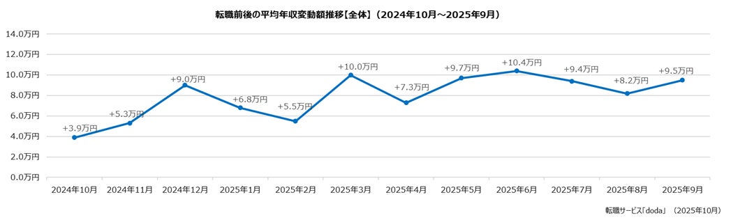 パーソルキャリア株式会社のプレスリリース(2025年10月30日 11時00分)doda転職前後の年収変動レポート【20…