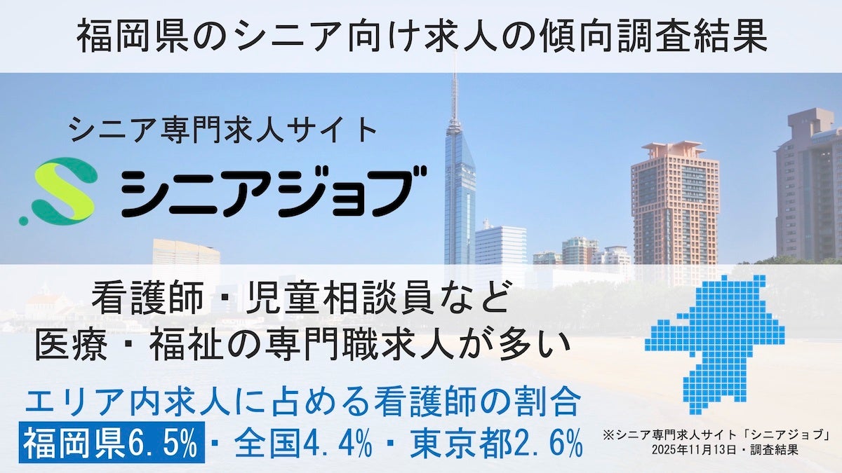 株式会社シニアジョブのプレスリリース(2025年11月17日 15時00分)福岡県のシニア向け求人は看護師など専門職が他…