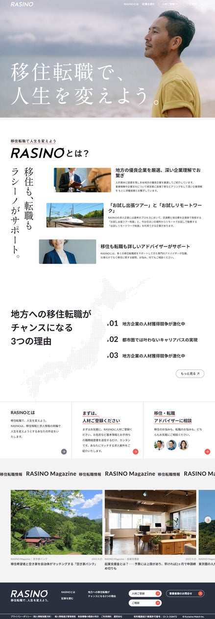 クラシノ株式会社のプレスリリース(2025年12月9日 06時50分)移住転職人材と、地方の求人企業をマッチングするRA…