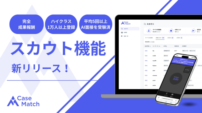 AI面接で得た能力指標を活用し、履歴書に依らない定量評価でハイクラス層へ精度高くスカウトできる点が新規性で、採用ミスマッチと工数の削減に寄与します。完全成果報酬で導入障壁も低いです。 記事の概要 AI面接プラットフォーム「CaseMatch」が新卒・中途採用向けのスカウトサービスを正式リリースしました。本サービスは日々のAI面接で得られる課題設定力や施策立案力といった能力評価データを活用し、履歴書 […]