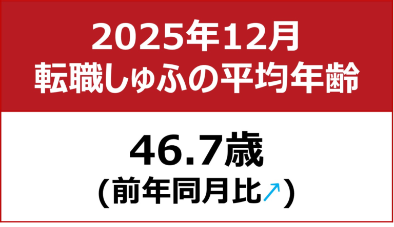 【転職しゅふの平均年齢調査 2025年12月】46.7歳(前月比+0.7歳)