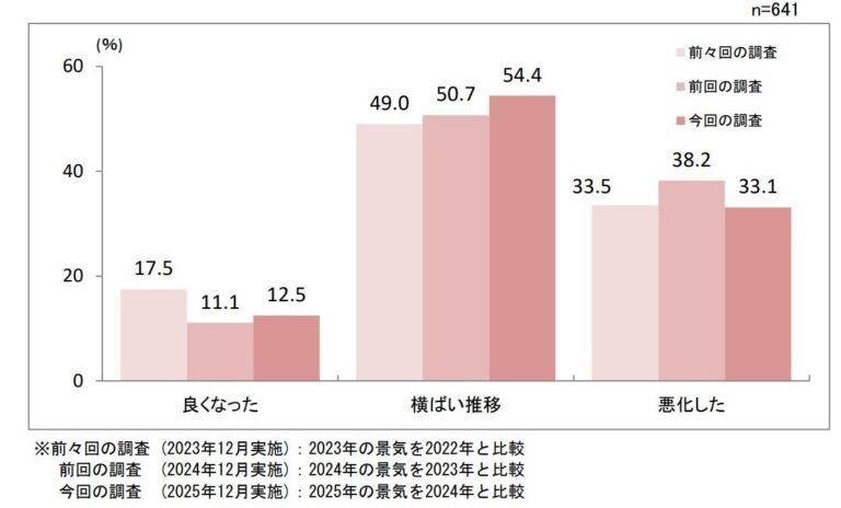 価格転嫁の可否とコスト高の定着が中小企業の業績を左右し、2026年施行の新法が賃上げや人材確保に与える影響が注目されます。 記事の概要 特別調査では、2025年の景況は「良くなった」12.5%、「横ばい」54.4%、「悪化」33.1%で前年よりやや改善しました。2026年は「良くなる」30.3%と緩やかな回復予想が増える一方、自社売上の増加見込みは24.5%にとどまり慎重な姿勢が見られます。不動産 […]